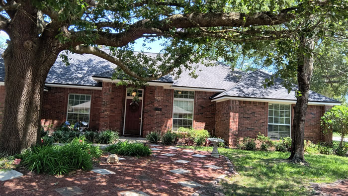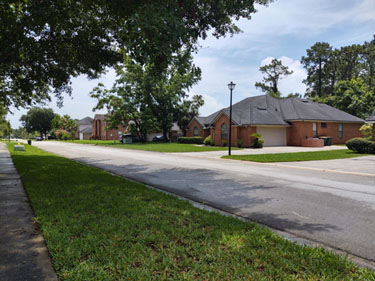 neighborhood with spacious brick homes on large lots and wide, tree lined