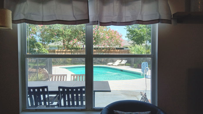 views of swimming pool from many windows). Open floor plan, eat-in kitchen,