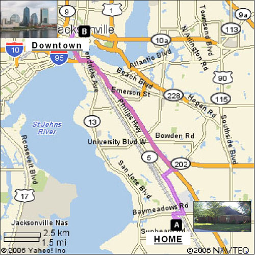Downtown Jacksonville from this home is 12 miles... 17 minutes away. Several ways to get there: · Baymeadows to I-95 North · or you can take Philips Highway 1 North · So if there's traffic, you have alternate routes (during rush hour, add another 10 minutes to your commute)